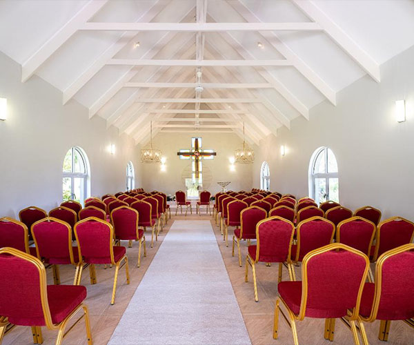 Seating Capacity: Our chapel comfortably accommodates up to [insert number] guests, making it ideal for both intimate gatherings and larger celebrations. The thoughtful layout ensures that every guest has a great view of the ceremony.